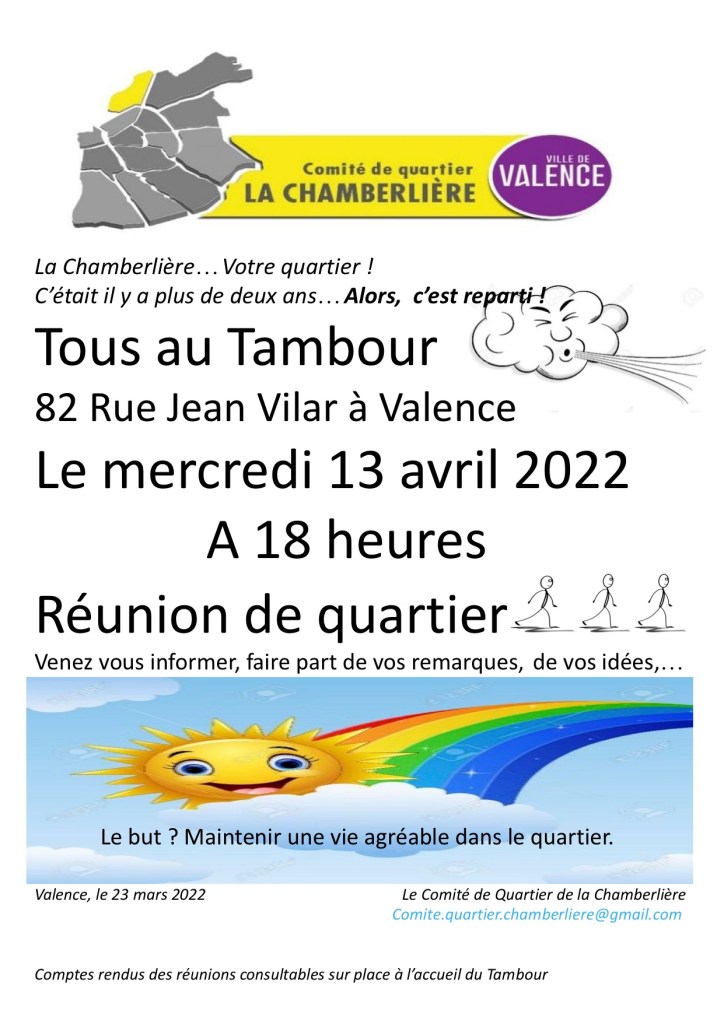 Rendez-vous mercredi 13 avril 2022 à 18 heures au Tambour.