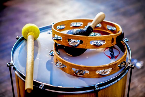 l’initiation aux percussions brésiliennes avec un intervenant professionnel extérieur.