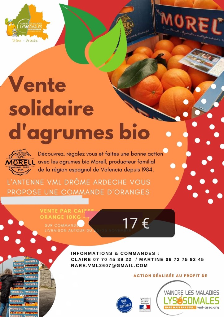 Nouvelle opération « Vente solidaire d’agrumes bio »  au profit de l’association VML, Vaincre les Maladies Lysosomales.