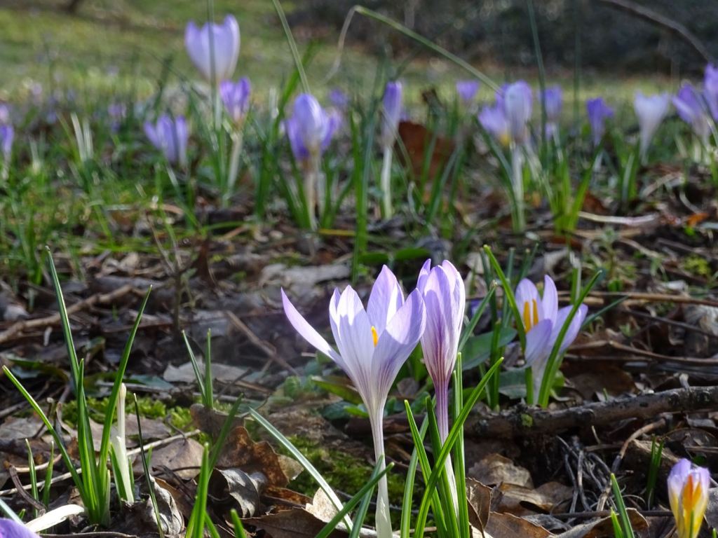 Ensuite une descente raide et glissante vers le sentier qui monte vers le Pas de Bouvaret. Avant d’arriver au Pas on a mangé dans une prairie sous un soleil bien chaud : on aurait pu croire une journée d’avril ou mai. En descendant – depuis le Pas du Bouvaret – les premiers virages étaient glissants mais sans danger… A la fin de ce sentier il y a vue très intéressante du Deux Soeurs (La momie) et aussi nous avons découvert un pré couvert de crocus . La suite de notre balade est un sentier qui traverse – en balcon – le versant sud de la vallée. De temps en temps, il a fallu s’arrêter pour retourner voir la vue spectaculaire de la chaîne des falaises.