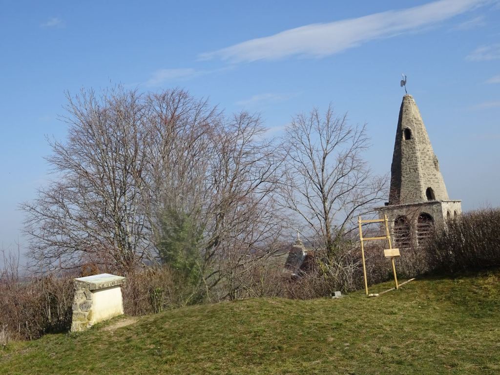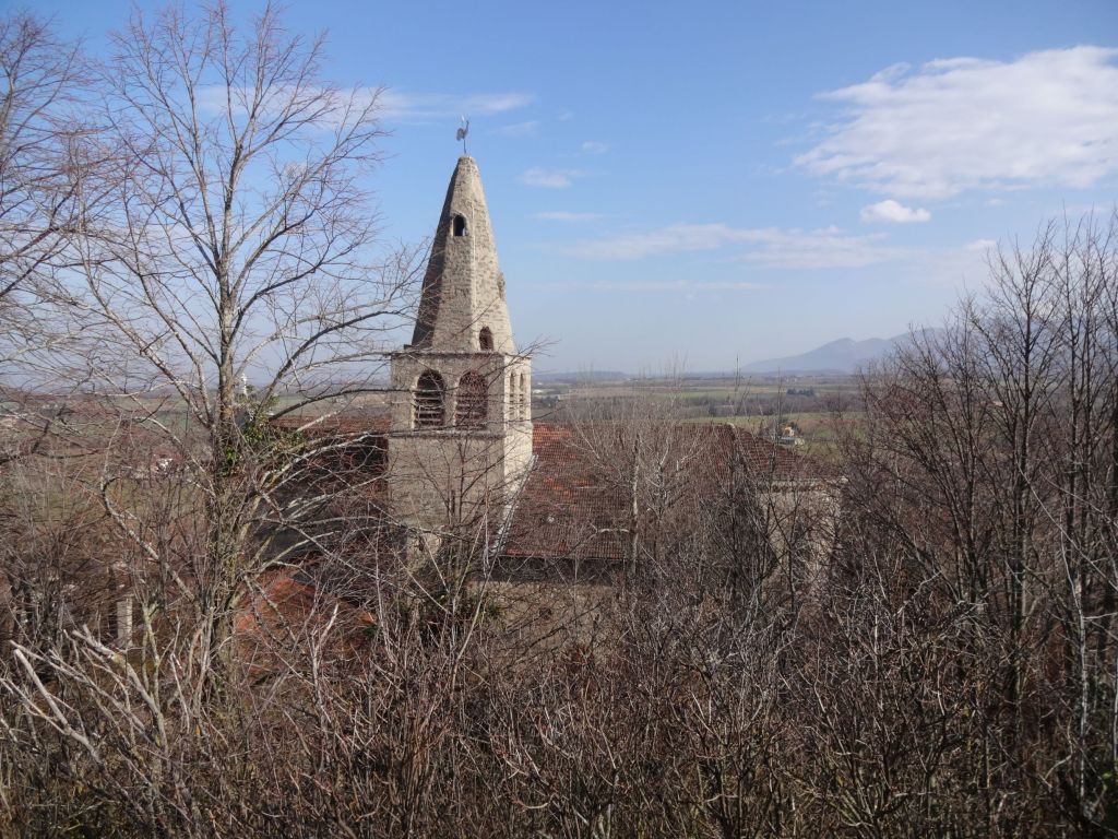 elle est remarquable par son clocher alpin refait au XIX siècle, au sommet de la butte se trouve une table d’orientation qui offre une vue panoramique aux alentours.