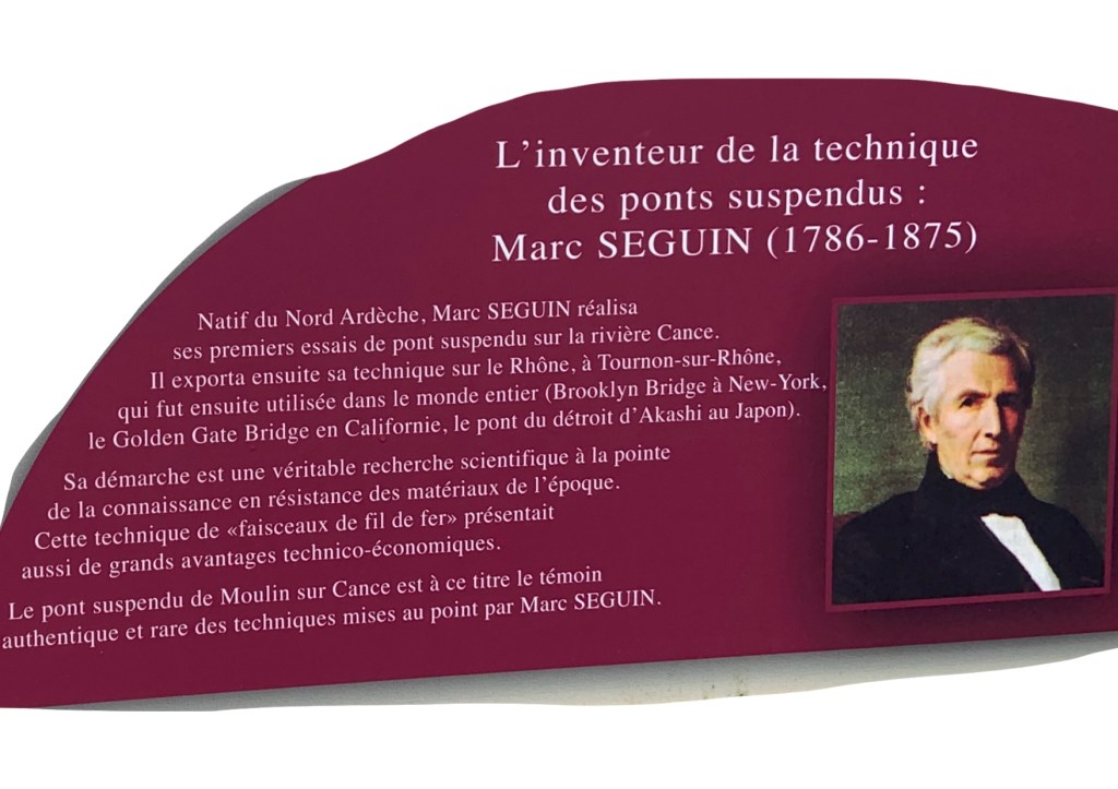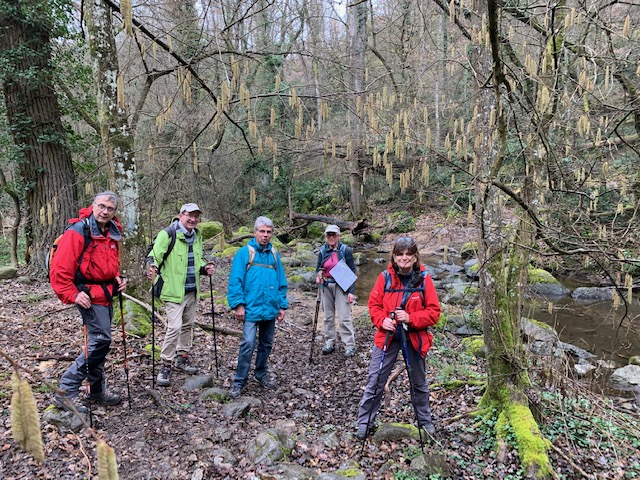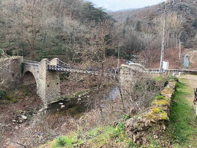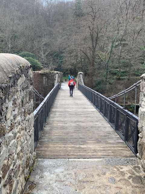 Ensuite nous empruntons le pont suspendu refait en 2013 à l’identique de celui construit entre 1863 et 1865. Un chemin remontant nous ramène au lieu dit les Combes. Là, la pluie nous a rattrapé, en forçant le pas, nous rentrons aux voitures un peu mouillés… mais HEUREUX !