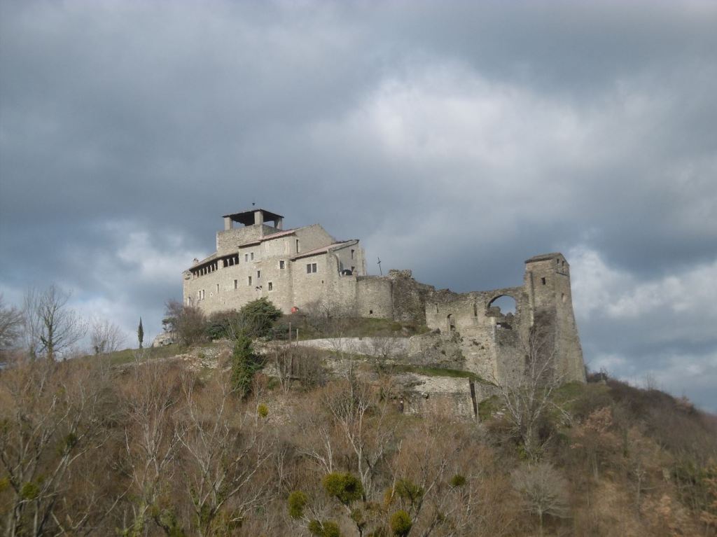 En chemin nous nous sommes arrêtés à la chapelle de Notre Dame du bon secours et aux ruines du monastère (construit à partir de 1165) dont la chapelle fut la propriété. Cette église de chanoines réguliers est bien ruinée ; contemporaine de l’église de La Clastre au XIIe siècle elle pouvait constituer un établissement estival, alors que La Clastre servait en hiver. Un ermitage y est attesté dès 1520. Sa nef comportait deux travées ; elle ouvrait sur une abside polygonale à sept pans à l’intérieur comme à l’extérieur dont la coupole en cul-de-four reste conservée. Différents aménagements (citerne, canal…) témoignent des efforts faits pour y fixer la présence humaine. Dans le cadre des chantiers internationaux Jeunesse et reconstruction, le monastère est restauré (très partiellement) de 1988 à 1995.