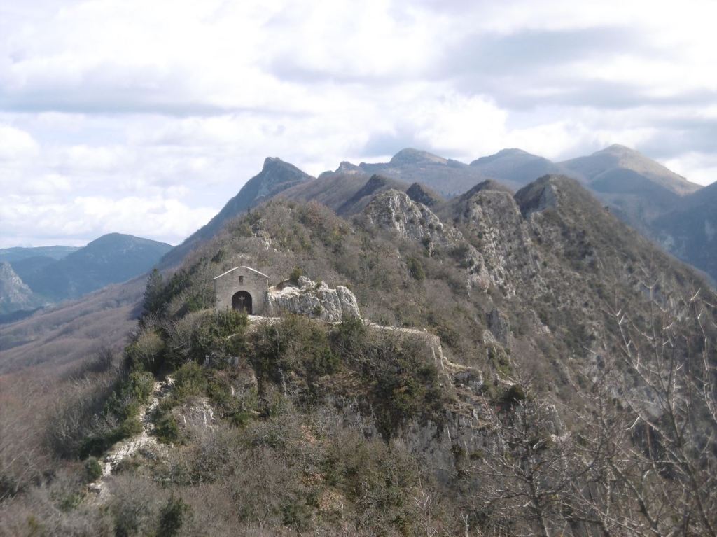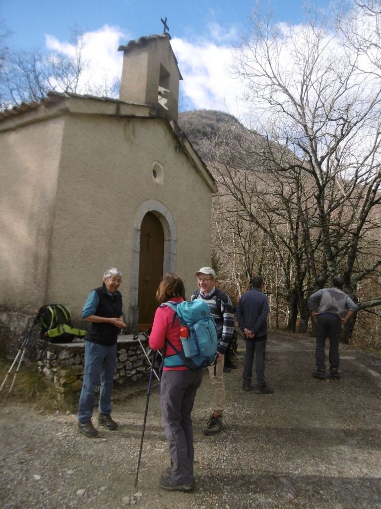 Le but de cette randonnée était d’atteindre la chapelle de St Médard perchée à 820 m d’altitude sur une des crêtes du synclinal perché de Saoù. L’ascension jusqu’à celle-ci a demandé un bel effort (la descente ne fut pas mal aussi, avec des pentes raides et glissantes). Mais quelle récompense une fois arrivé au sommet. Depuis cette chapelle, sobre mais touchante, un panorama unique se dessine des 3 Becs jusqu’au Dévoluy La vue plongeante sur la Forêt de Saoû et les crêtes du synclinal perché permet de mieux comprendre ce relief si particulier. Endommagée par la foudre en 2004, la chapelle a fait l’objet de travaux de restauration au début de 2005. Un pèlerinage s’y déroule le lundi de Pentecôte.
