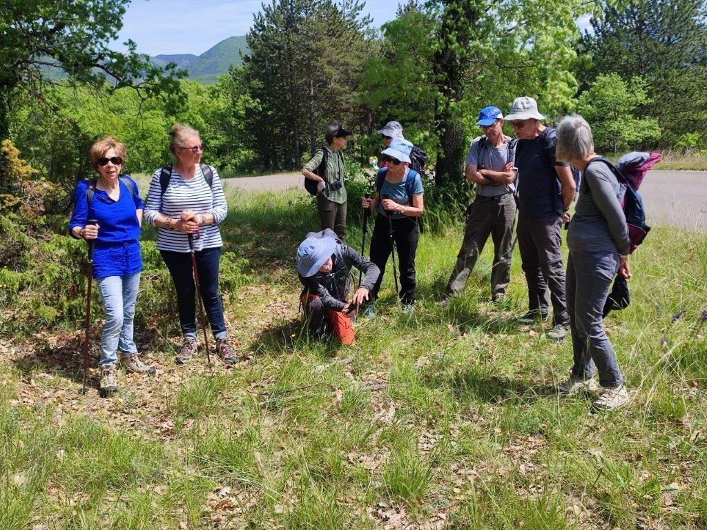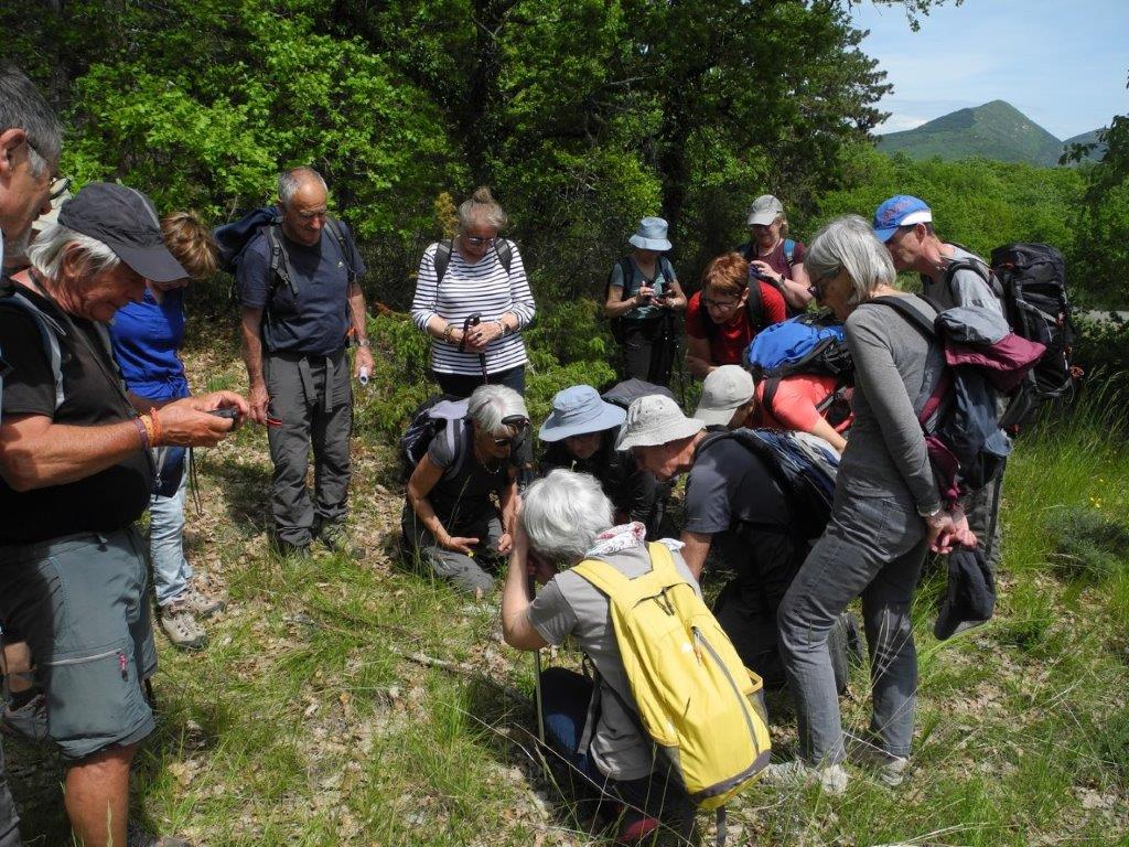 Une agréable virée aux Orchidées, au jardin botanique de Sanoflore et à la Brasserie des 3 Becs pour 19 Chamberliens (Yves et Christiane G, Patrice et Monique B, Juliana T, Marie-Thérèse A, Pascale F, Béatrice V, Affisa K, Martine G, Josette N, Jean-Jacques D, Michel V, Catherine D, Jean S et Corinne C, Aline D, Eric L et Robert G.). Garés au pied du village de Lozeron, nous sommes entrés rapidement dans le vif du sujet « à la recherche des Orchidées ».
