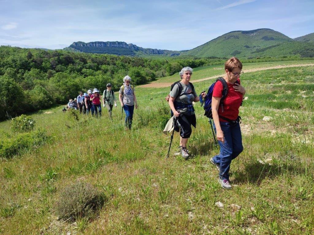 Yves et Christiane nous font découvrir toutes les variétés d’orchidées présentes le long de notre cheminement. Nous apprécions la mi-ombre des sous bois de chênes verts, les petites clairières et le chant des oiseaux. La tête remplie de noms d’orchidées, de plantes et fleurs diverses, nous quittons les sous-bois pour traverser la plaine des Chaux où nous découvrons une belle ferme abandonnée mais de caractère.