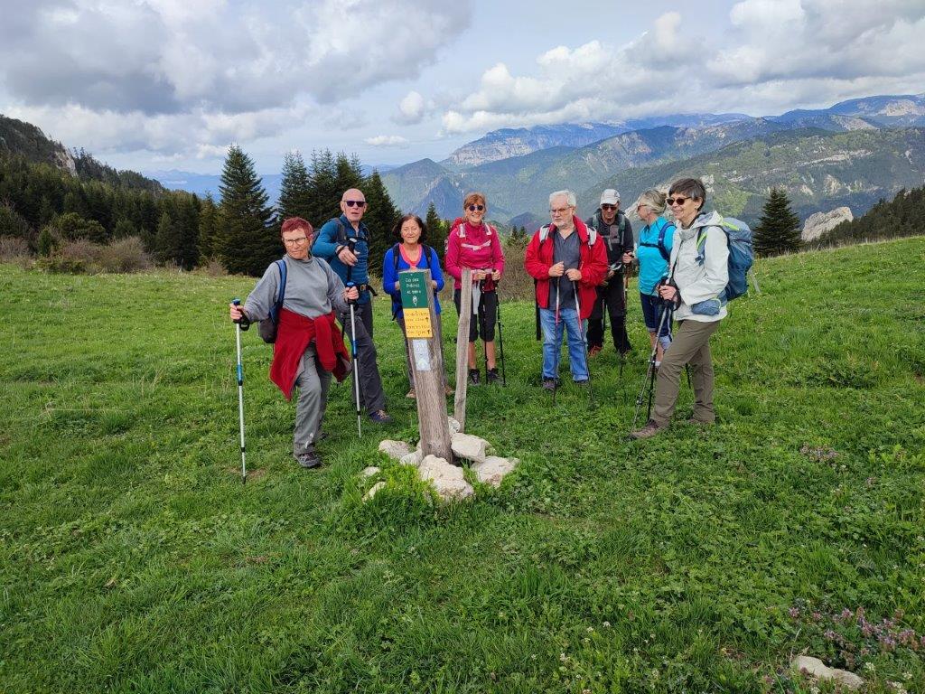 28 Chamberliens participaient au séjour randos en Trièves du mardi 9 au vendredi 12 mai. Comme tous les vendredis, il y avait 3 groupes. Tous ponctuels au départ de Valence le mardi 9 mai, 9 véhicules se sont élancés en direction de Die puis du col de Grimone pour 7 d’entre eux et de Lus la Croix Haute pour les 2 autres. Arrivée vers 10 heures au col de Grimone, il ne pleuvait pas encore. Les randonnées prévues, le Jocou, la boucle des cols des Prêtres et de Lus et un circuit maison à Lus la Croix Haute se sont déroulées avec un temps sec et partiellement ensoleillé jusque vers 14 heures puis une fine pluie est venue légèrement troubler la descente. Entre 16 et 18 heures, les trois groupes arrivaient au gîte de l’Ermitage Jean Reboul à Saint Maurice en Trièves. Après s’être installés nos vaillants randonneurs apprécièrent un copieux repas et une soirée « jeux de société » très animée.