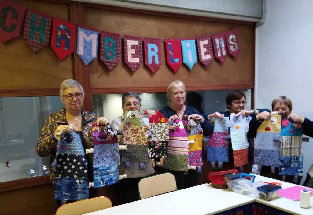 Au Marché de Noël des Chamber’liens au Tambour ce 18 novembre, vous trouverez quelques confections cousues de l’atelier Patchwork du jeudi.