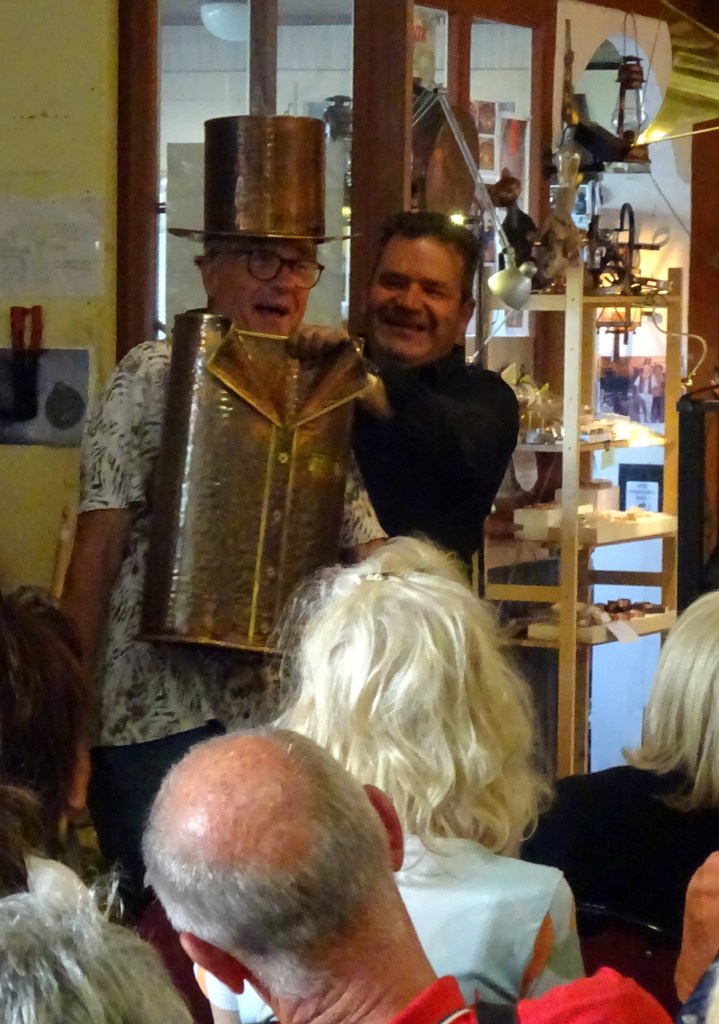 Retour par le passage d’une écluse pour traverser le Rhône et rejoindre Lavours et sa cuivrerie et dinanderie artisanale pour une démonstration du travail d’une feuille de métal jusqu’à la création d’un objet authentiquement artisanal par la magie d’un geste ancestral, transmis de génération en génération.