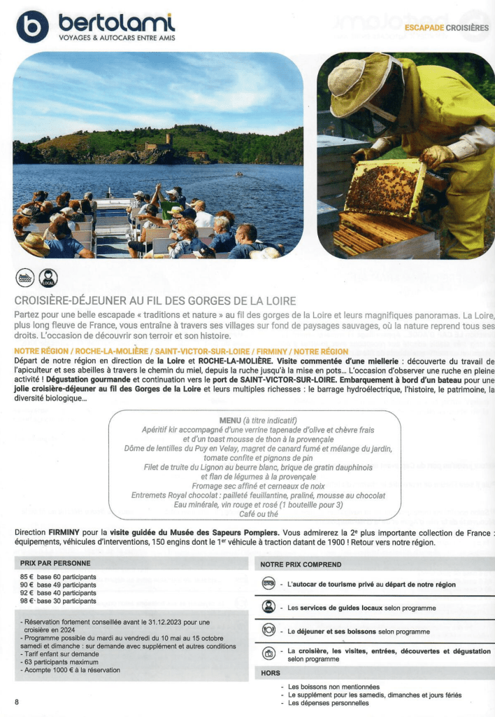 La destination de notre prochaine sortie à la journée a fait l’objet d’un vote en séance ; ce sera une Croisière-Déjeuner au fil des gorges de la Loire, dont la date sera fixée ultérieurement avec le voyagiste.