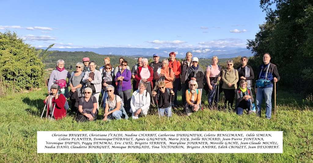 22 randonneuses,4 randonneurs ,8 km 500 et 185 m de dénivelé pour cette rando dans le bois des Ussiaux à Peyrins.Petit village en drôme des collines, bien connu pour ses carrières de molasse, collines boisées et ses sentiers sablonneux.