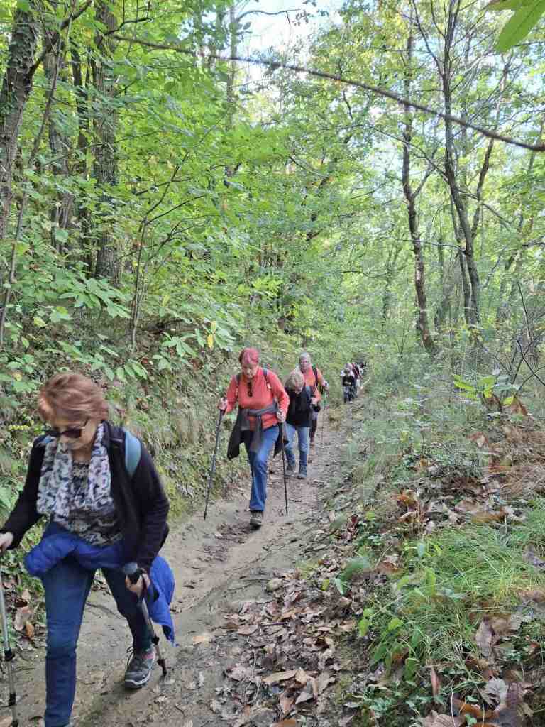 Nous démarrons sous un beau soleil automnal par une pente douce sous les chênes en abondance certain disent que l’hiver sera froid et les châtaigniers pour pénétrer dans le bois des ussiaux, certains en profites pour faire la cueillette des châtaignes .Nous nous rassemblons sous un châtaignier avant de prendre un sentier montant avant de nous apercevoir que ce n’est pas le bon alors demi tour.