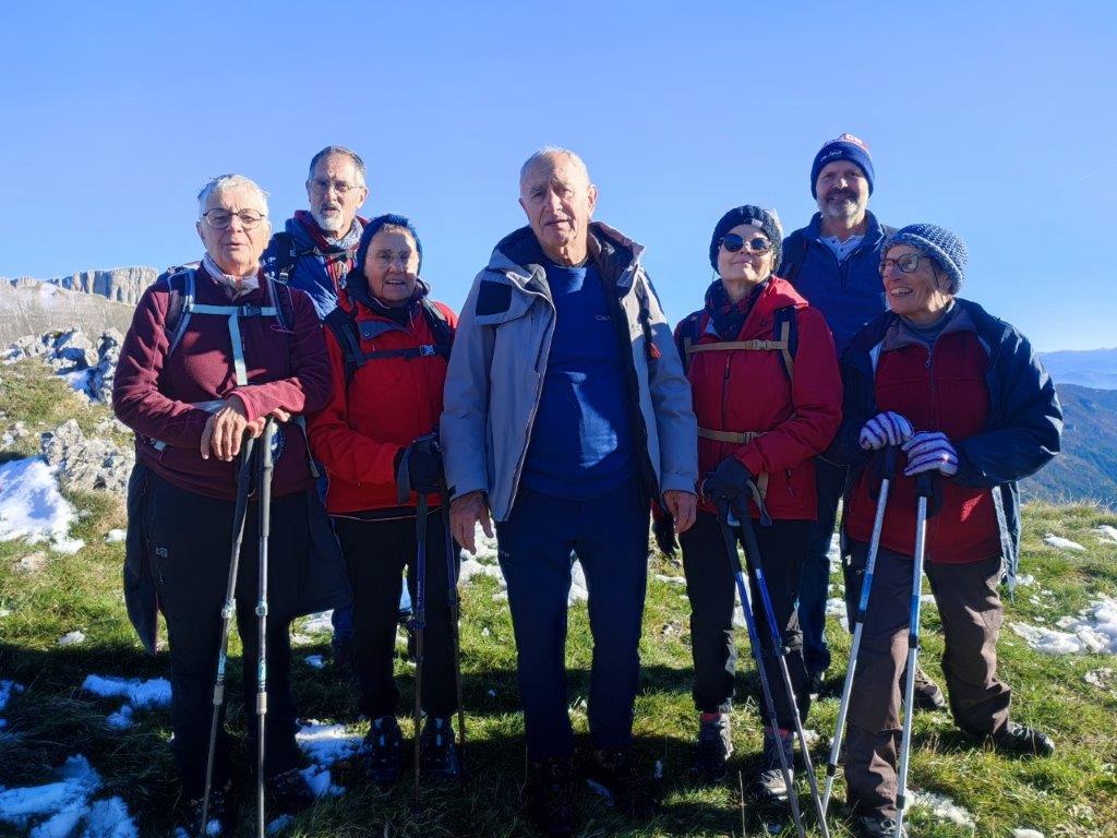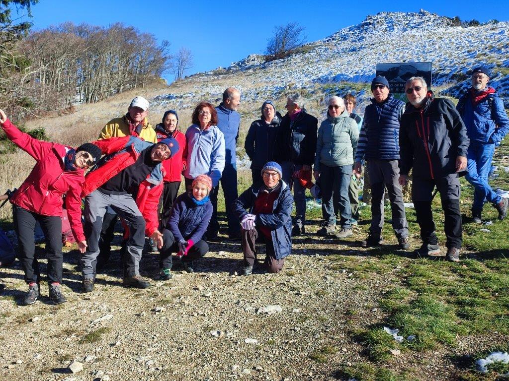 Une arrivée enchantée à l’auberge du Grand Echaillon (fermée) sous le décor des grands arbres givrés sur fond de ciel bleu. Tout était réuni pour une belle journée, la géolocalisation du téléphone était parfaite. Nous n’avions pas parcouru 500 m, que nous n’avions plus de réseau et que les balisages recouvert de givre étaient invisibles. Les esprits malins de Léoncel avaient frappé. Bref, nous avons pinaillé au départ pour prendre la bonne piste après quelques aller-retour au pré Michel près du Serre du Lion…. . Après s’être remis sur le bon chemin on pouvait voir, dans la neige, les traces des mauvais pas du groupe de Léoncel. Ils étaient donc devant nous les mécréants. Les arbres givrés en pleuraient sous le soleil, il fallait même mettre les capuches pour ne pas se faire mouiller. Bon, au hameau de Gampaloux on les a rapidement rejoint sous les sifflets auxquels on n’a pas voulu répondre. Après quelques congratulations et quelques hésitations on les a suivi dans la montée de la forêt de Comblezine, toujours sous les gouttes en plein soleil, pour déjeuner ensemble au col de la Bataille et faire la photo de famille. Nous avons continué la randonnée avec nos aînés sur les crêtes de Sausse sous un magnifique panorama (le roc de Toulau et le plateau d’Ambel enfarinés, la vallée d’Omblèze, …… plus loin la forêt de Rucla avec un belvédère au dessus de la Vacherie et Léoncel, la double arche de Rucla …. voir photos). Enfin détachés du groupe de Léoncel, nous avons rejoint le ravin de Pissenible pour reprendre les voitures. Au passage à Léoncel, leurs voitures étaient toujours stationnées, on a pris tout de même de leurs nouvelles au téléphone. Tout est bien qui finit bien pour cette merveilleuse et lumineuse randonnée. dixit Robert