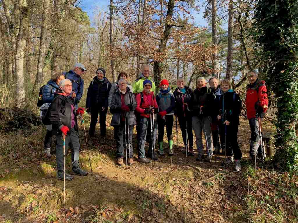 Rando du vendredi 20 décembre 2024 à Saint Donat : 15 randonneurs étaient au rendez vous en ce vendredi 20 décembre pour une petite ballade avant notre repas annuel au restaurant (Régine et Bernard S, Dominique et Françoise F, Corinne et Jean, bb1 et bb2, Colette K, Béatrice, Josette R, Isabelle et Bruno P, Didier, Monique C)