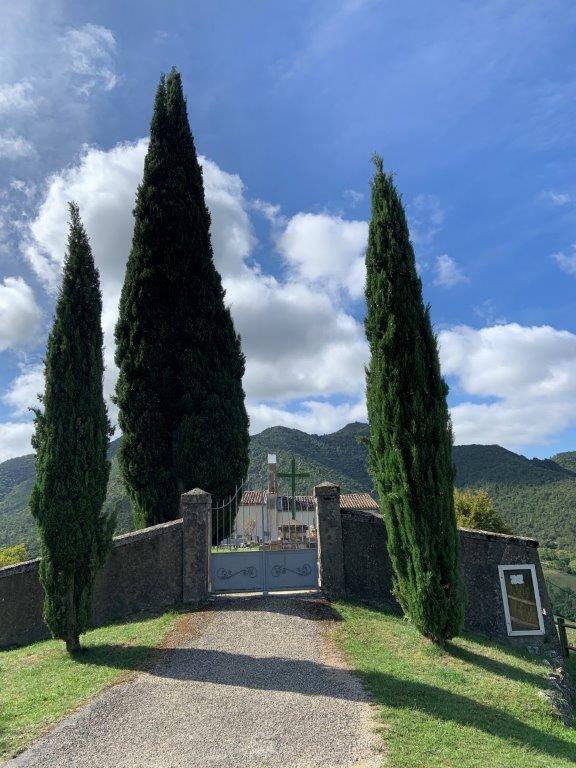 3 Chamber’liens (Jim, Régine et Bernard S) étaient au départ à 8h, par ce beau mardi ensoleillé. Au programme les hameaux d’Eygluy et de L’Escoulin dont on ne se lasse décidément pas… Autrefois 2 communes séparées dans deux vallées parallèles, jusqu’à leur fusion en 1971. Départ de la rando depuis Eygluy, passage au hameau les Tourniers puis au col de Fonteuse (817m), d’où l’on redescend par la côte Marnier, jusqu’à la passerelle de L’Escoulin. Petite halte à la fontaine du village. Puis destination son église, juchée sur son promontoire et adossée au cimetière de la paroisse Saint Pierre de la Sépie (nom du petit ruisseau en fond de vallée). Coin idéal pour la pause de midi devant une vue splendide sur l’ensemble de la vallée. Devant nous 2 sommets le Taillefer (932m) à notre gauche dont nous avons fait le tour vendredi avec Bruno et le Merly (959m) à notre droite qui nous fait de l’œil depuis le début de notre rando. Une fois restaurés (chocolat et verveine en bonus), la rando se poursuit en direction du col de Véraut (690m). La montée s’est faite allègrement et nous avions encore des fourmis dans les jambes pour une petite variante chère à qui vous savez… Depuis le col nous avions repéré un chemin pour contourner le Merly. Après un soigneux examen du profil de ce tracé imprévu et surtout une large concertation avec tous les participants… nous voici partis pour cette boucle supplémentaire que nous vous recommandons pour de belles vues sur Plan de Baix et la Croix du Vellan, Beaufort sur Gervanne et la Combe de Laye.