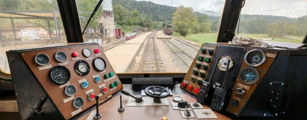 Le mercredi 24 septembre, avec les mal-voyants, il avait été convenu d’aller prendre les vélos-rails du Mastrou, le petit train de l’Ardèche au départ de Boucieu-le-Roi. Le temps n’était pas au rendez vous. La pluie du matin présageait le pire mais notre réservation de billets ni remboursables, ni échangeables nous oblige à tenter le diable. Guilaine, Christophe, Fabien, Christiane I, Josette R, Jean S, et Robert restent confiants après avoir consulté la météo.