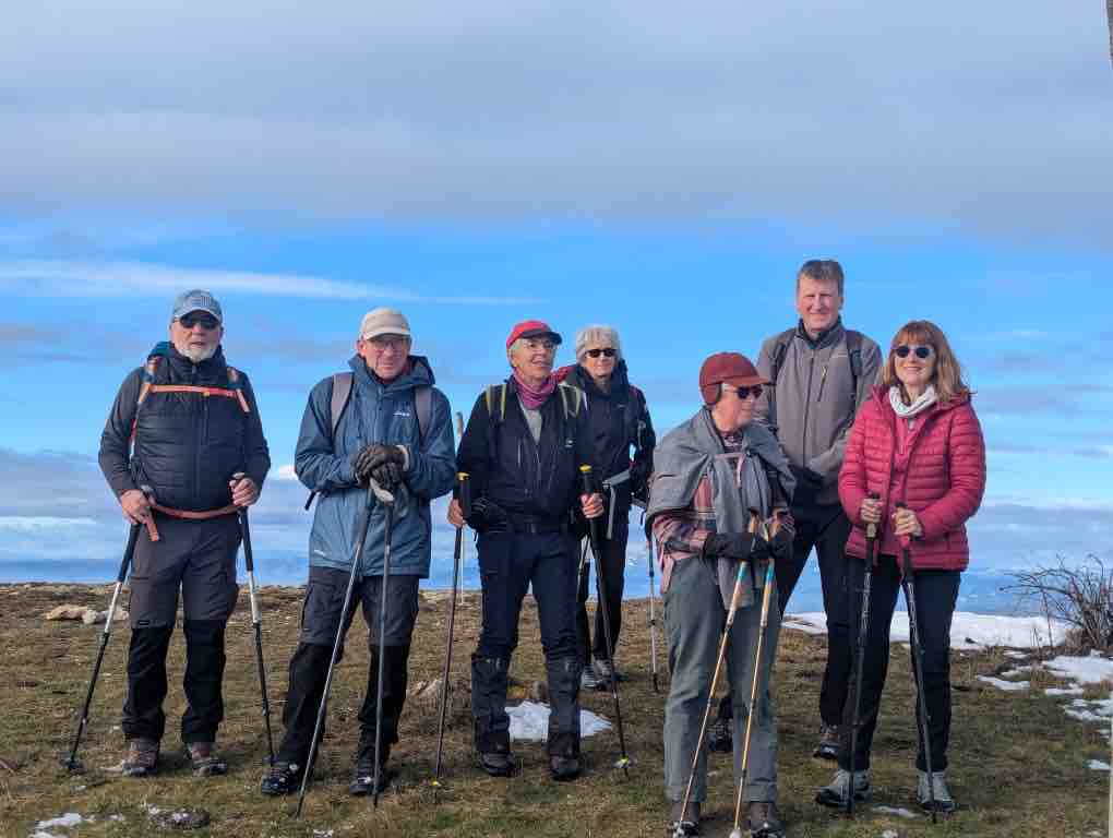 8 randonneurs: Brigitte BS, Brigitte BE, Danielle C. Martine, Bruno, Denis, Jim et Bernard