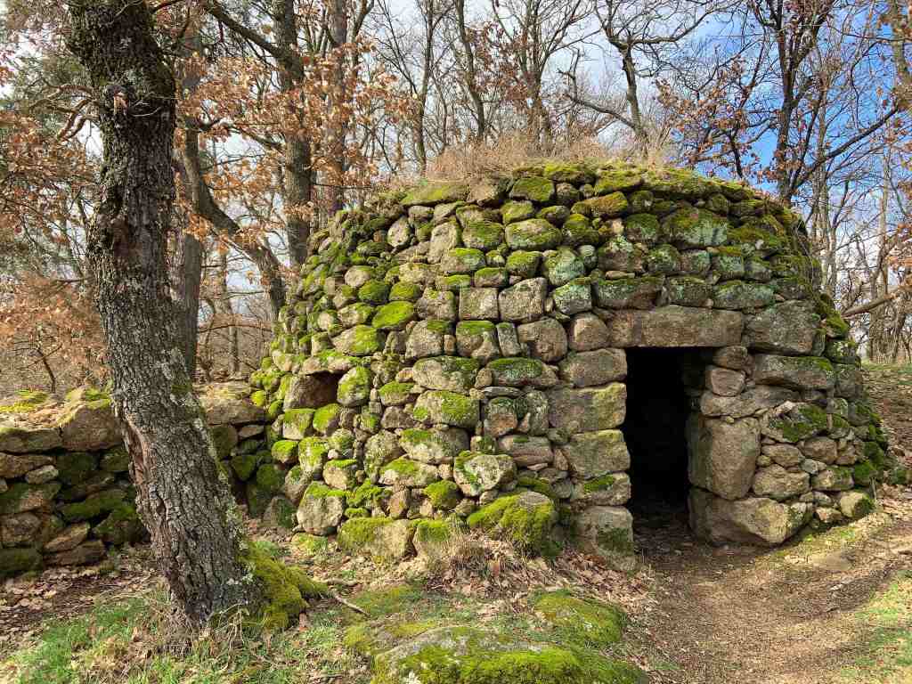 Le soleil jouant à cache-cache avec nous en fin de repas, pas de sieste au programme… Notre périple nous a conduit ensuite à longer un mur de pierre jusqu’à la cabane des Fans, restaurée par une équipe de bénévoles chevronnés du village de Quintenas (où, parait-il, on fabrique le meilleur boudin ardéchois…!). Nous sommes ensuite passés à l’Hotoire, ancienne maison forte où les protestants et les catholiques ont décidés de ne plus s’affronter en Vivarais (mais ailleurs!). Et pour terminer cette promenade en douceur, nous avons longé la Croisette, les pieds dans l’eau.