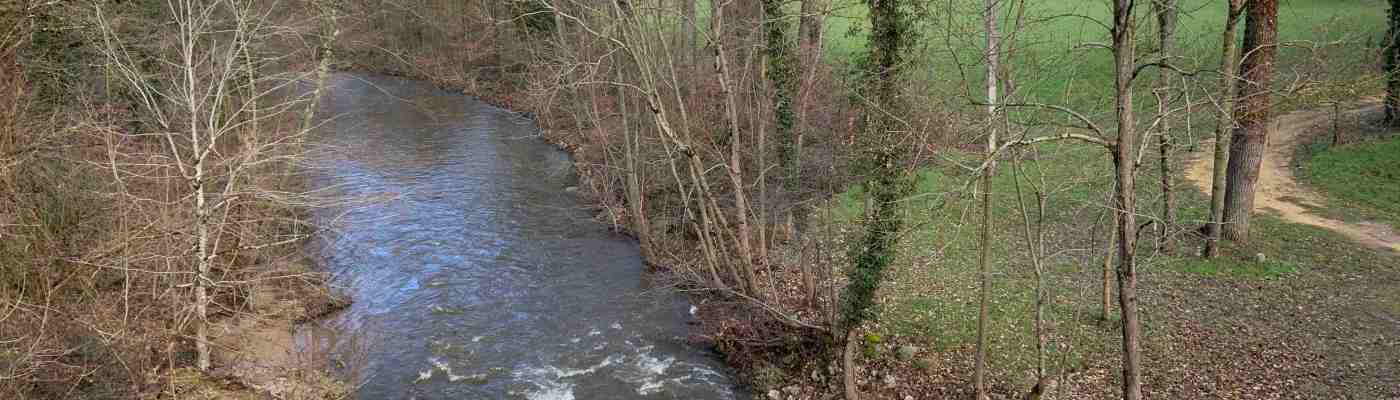 Après une brève descente du village, nous avons traversé la rivière L’AY au camping de l’Oasis, profitant de la passerelle des estivants. Nous aurions eu beaucoup de difficultés à la traverser par un gué tant le niveau de l’eau était élevé et le courant rapide… Le soleil a décidé de se montrer assez vite et nous a accompagné un bout de chemin… Notre parcours a ensuite suivi son cours jusqu’au ravin de St Pierre dont le pont du même nom, bien restauré par les Amis de St Pierre, nous a permis une nouvelle fois de traverser à pieds secs ((ouf !)).